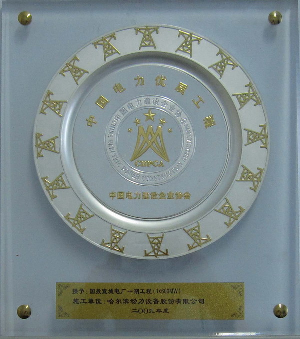 2009年6月,宣城电厂脱硫工程被授予“中国电力优质工程”奖。